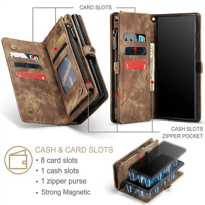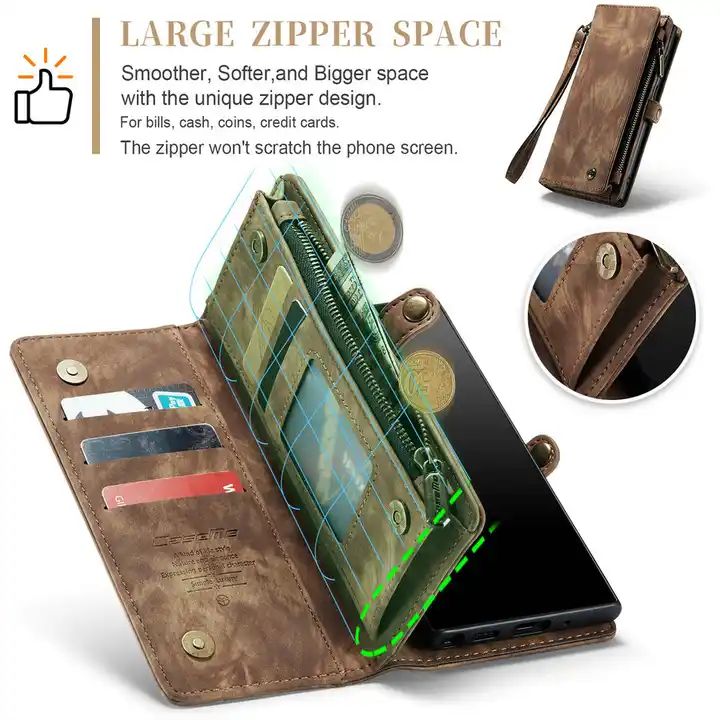 Material: Retro Leather + TPU+PC cover + Metal Zip